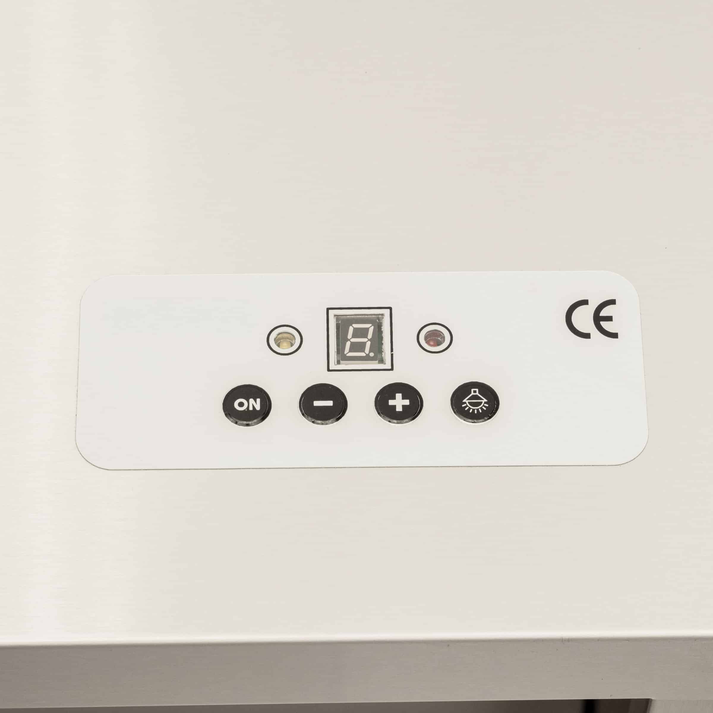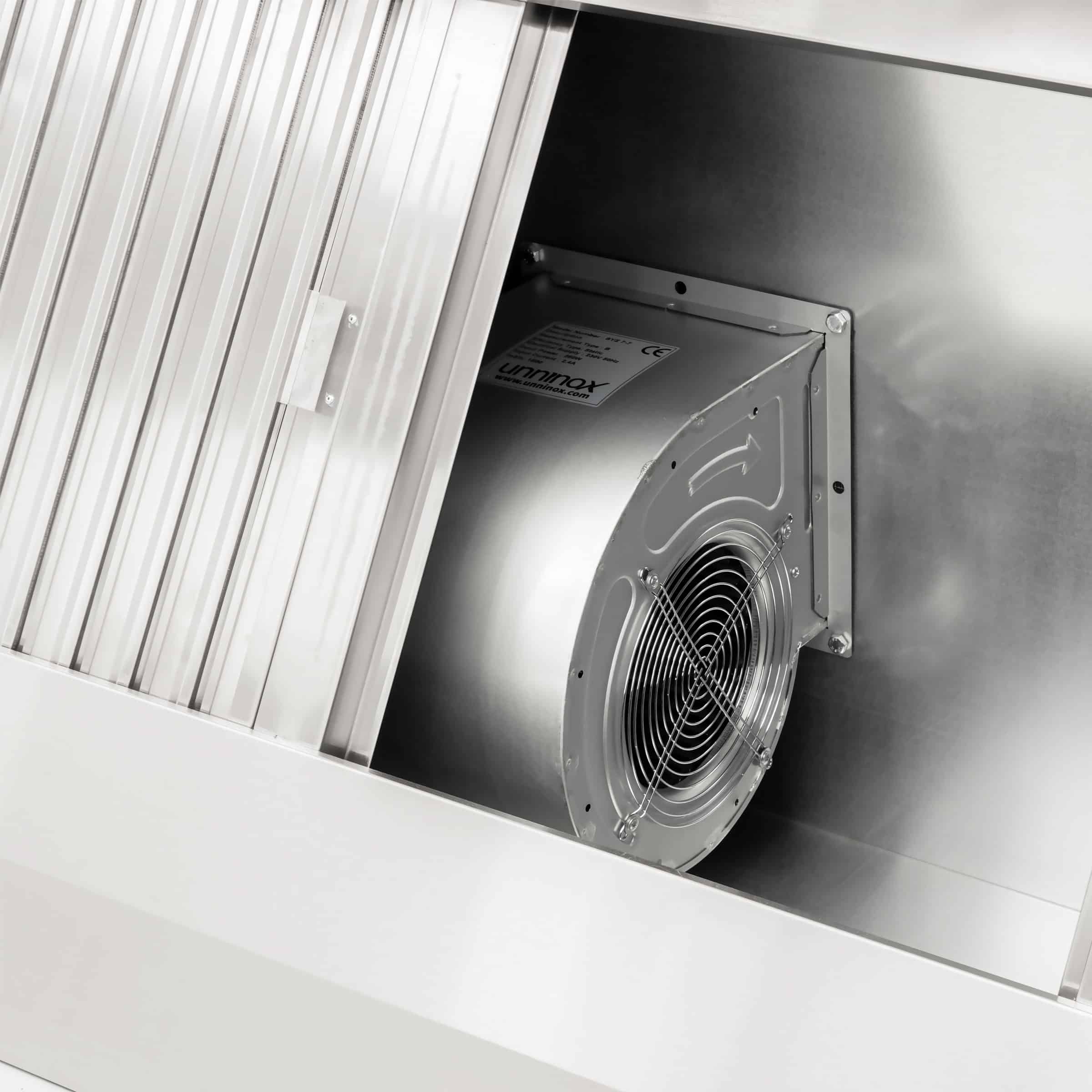Die Dunstabzugshaube verfügt über einen eingebauten Motor und LED-Beleuchtung, so dass Ihr Arbeitsplatz übersichtlich bleibt. Außerdem ist die Dunstabzugshaube mit einer digitalen Geschwindigkeitsregelung ausgestattet und die Gitter sind abnehmbar, so dass sie sehr leicht zu reinigen und zu pflegen ist.