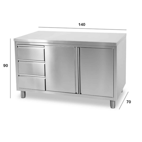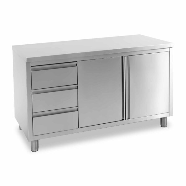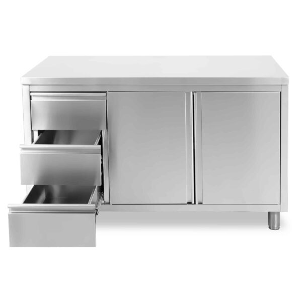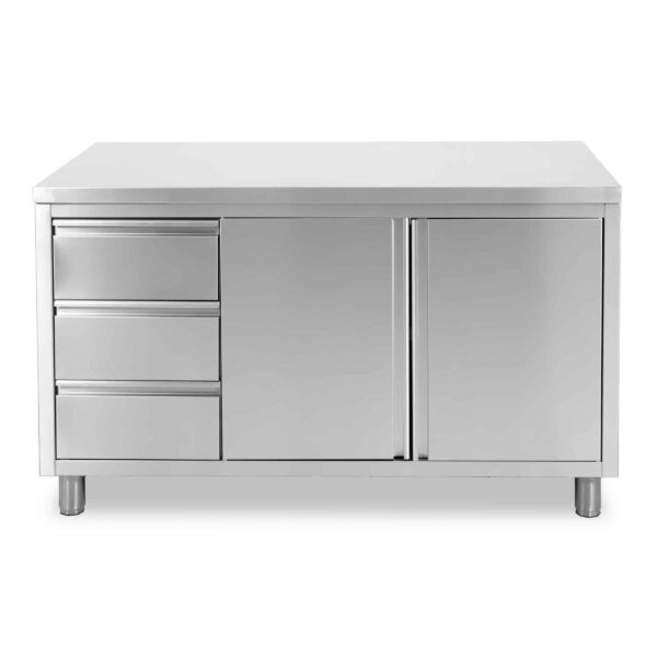 HCB Arbeitsschrank – Flügeltüren – 3 Schubladen – 140 cm – Edelstahl
