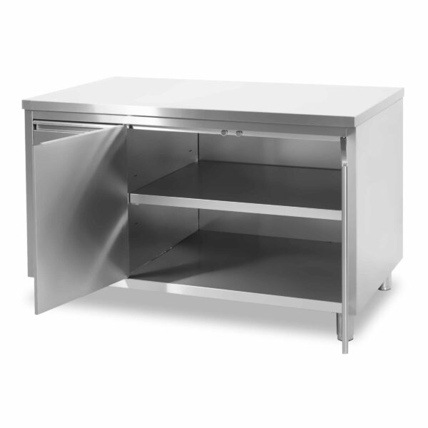 Um in Ihrer professionellen Küche sicher, optimal und effizient zu arbeiten, sind Arbeitsschränke aus Edelstahl von großer Bedeutung. Ausgestattet mit einer extrastarken Edelstahlplatte, stabilen Beinen und fest verarbeiteten Ecken, ist dieser Arbeitsschrank der Marke HCB daher die perfekte Wahl! Mit seinen sauber schließenden Flügeltüren und ausziehbaren Schubladen bietet dieser Arbeitsschrank übersichtlichen Stauraum. Außerdem eignet sich der Schrank dank seiner Robustheit und Belastbarkeit hervorragend für den Einsatz in professionellen Küchen.