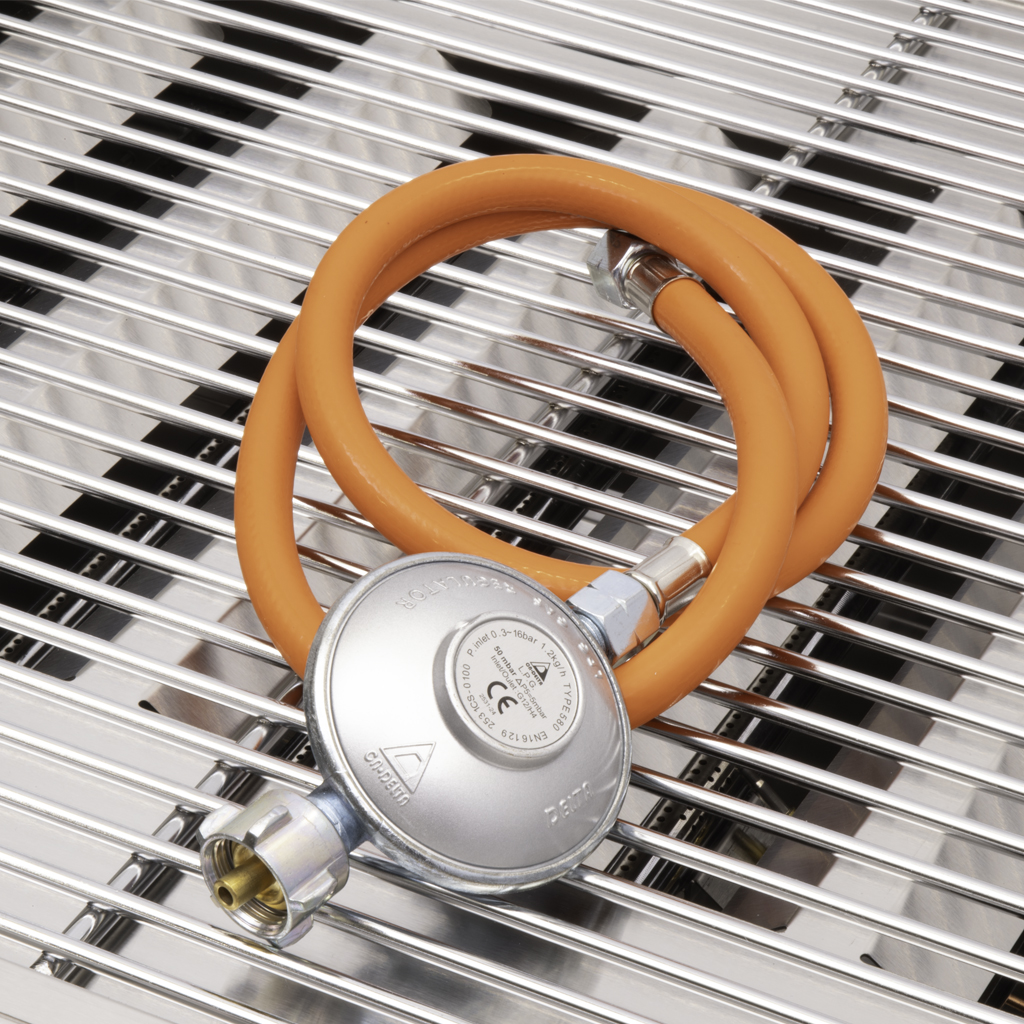 Entdecken Sie den professionellen Edelstahl-Grill von HCB, der für echte Grillfans entwickelt wurde! Mit 2 leistungsstarken Brennern für gleichmäßiges Erhitzen und einer praktischen Piezo-Zündung für den schnellen Start ist dieser Grill sofort einsatzbereit. Komplett mit Grillrost, Tropfschale, Gasschlauch und Druckregler bietet er alles, was Sie zum Grillen brauchen. Mit seinen 10 kW Leistung und dem Propangasbetrieb garantiert dieser BBQ köstliches Grillen mit Leichtigkeit und Präzision.