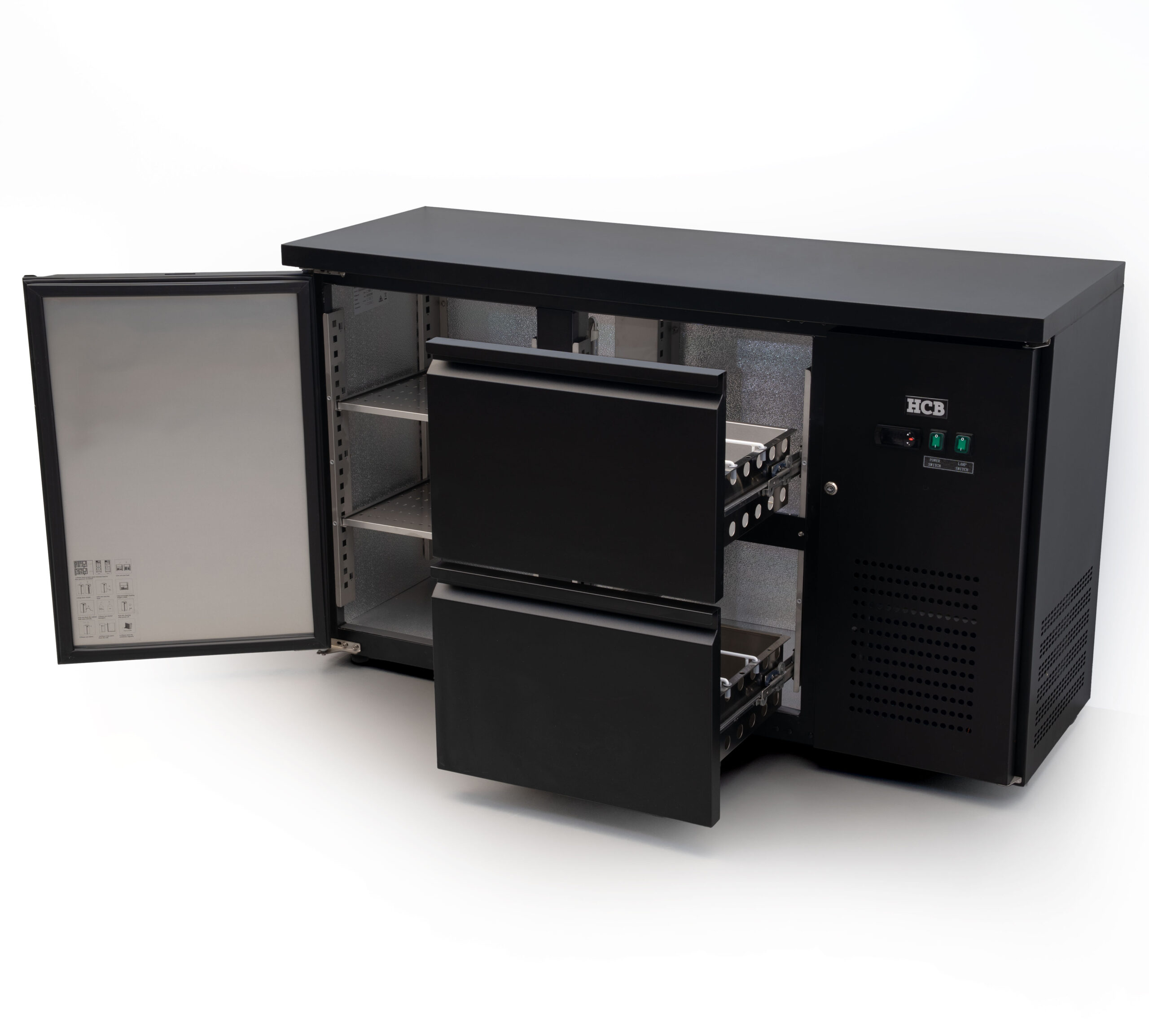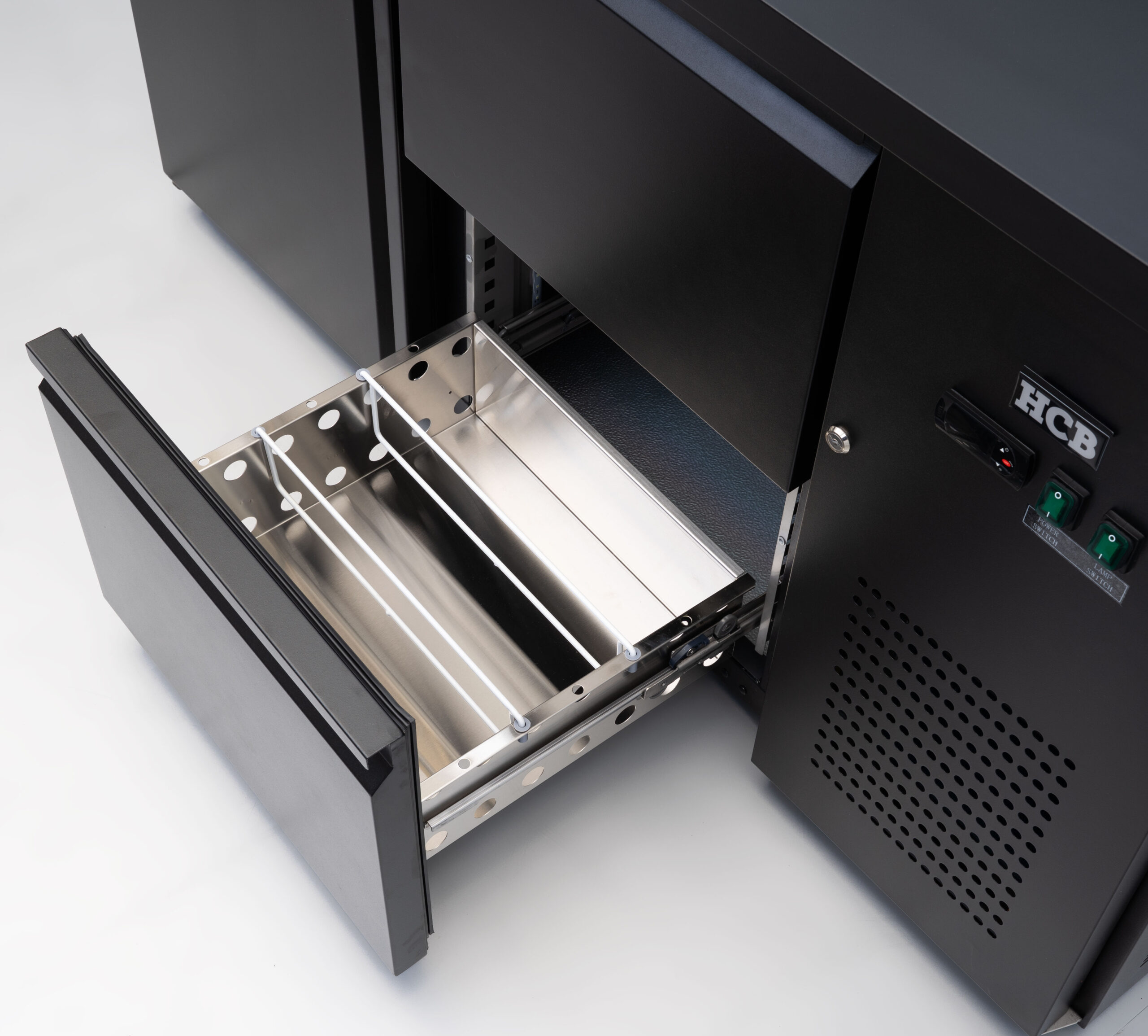 Deze HCB backbar barkoeling met 1 deur en 2 laden is perfect voor bars waar je snel moet kunnen pakken én overzicht wilt houden. De combinatie van een deurvak en lades geeft je een logische indeling: producten die je vaak nodig hebt leg je in de lades, voorraad of grotere items zet je achter de deur. Zo blijft je werkplek strak en kun je tijdens piekuren vlot doorserveren.