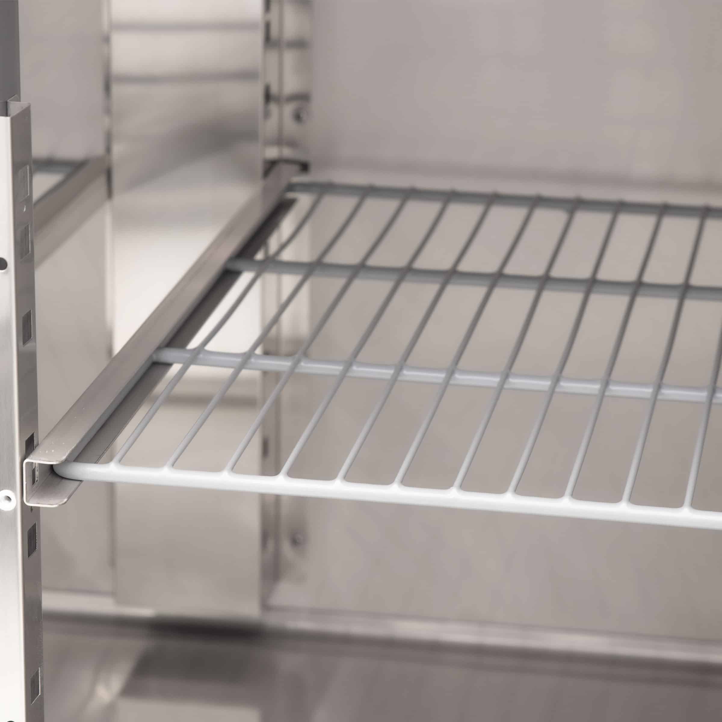 Mit einem cleveren Layout und praktischen Ablagefächern sorgt die gekühlte Werkbank dafür, dass Sie Zutaten und Utensilien immer in Reichweite haben.