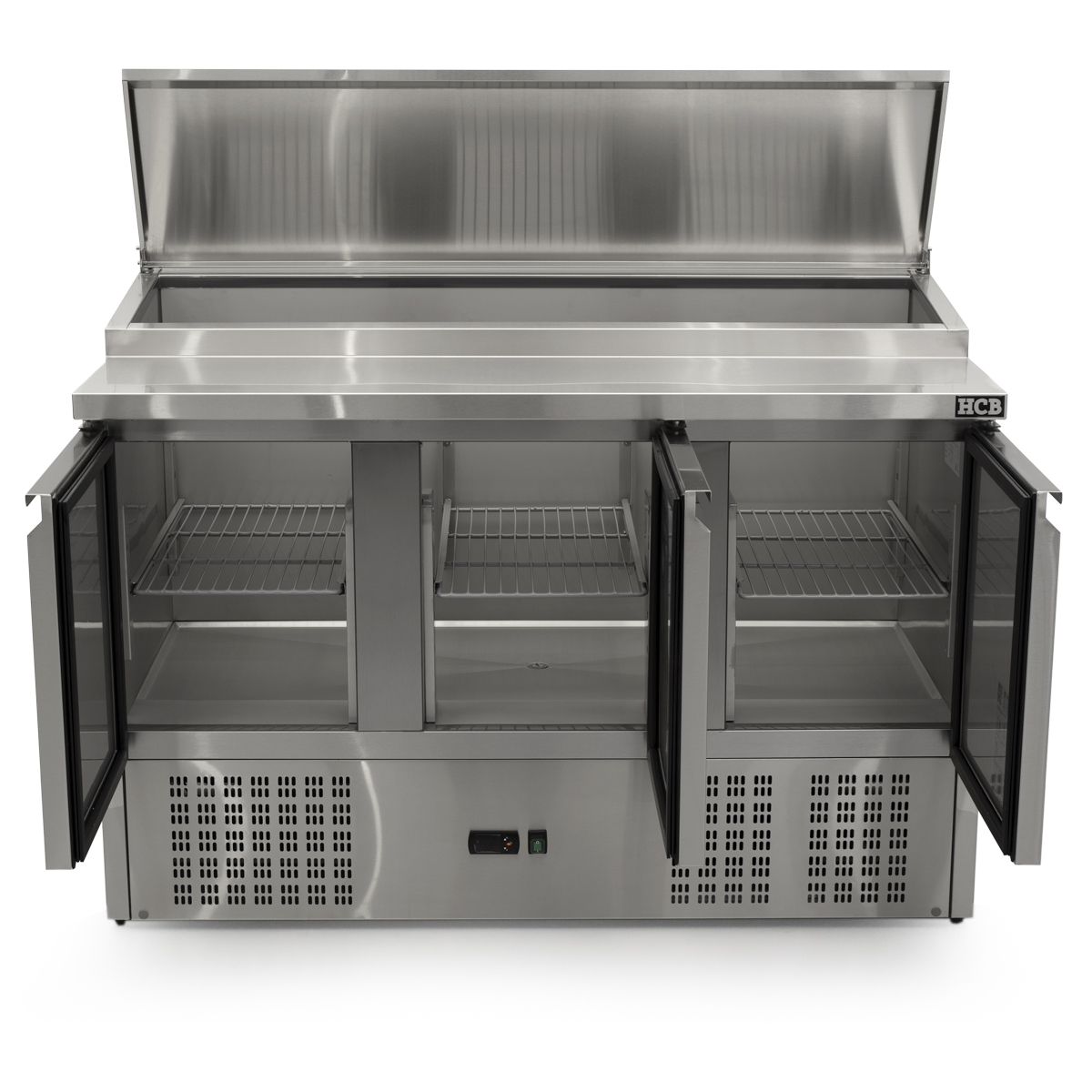 Die HCB Saladette gekühlte Werkbank ist von hoher Qualität und hat ein stilvolles Design, das perfekt in jede professionelle Küche passt. Entscheiden Sie sich für Zuverlässigkeit und Funktionalität mit der HCB Saladette gekühlten Werkbank mit aufklappbarem Deckel.