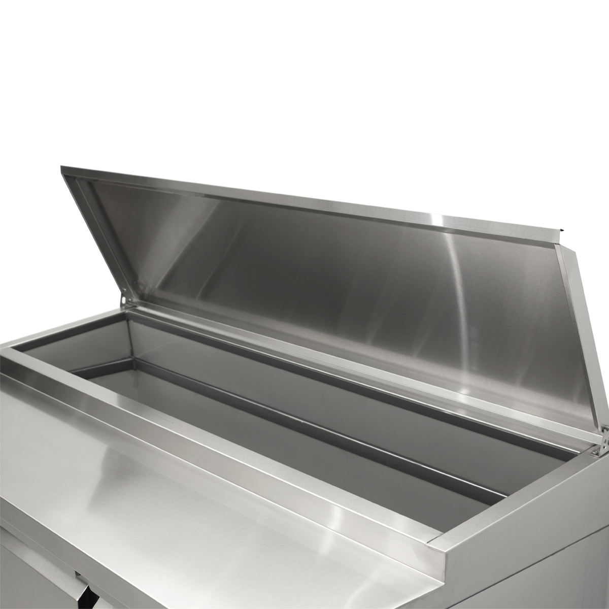 Mit Platz für 1/1-Gastronorm-Behälter bietet diese gekühlte Werkbank genügend Stauraum für alle Ihre Zutaten, Saucen und Dressings. Dank des aufklappbaren Deckels sind Ihre Zutaten leicht zu erreichen, ohne dass Sie die gesamte Kühlwerkbank öffnen müssen. So bleiben Ihre Zutaten länger frisch und bewahren ihren Geschmack.