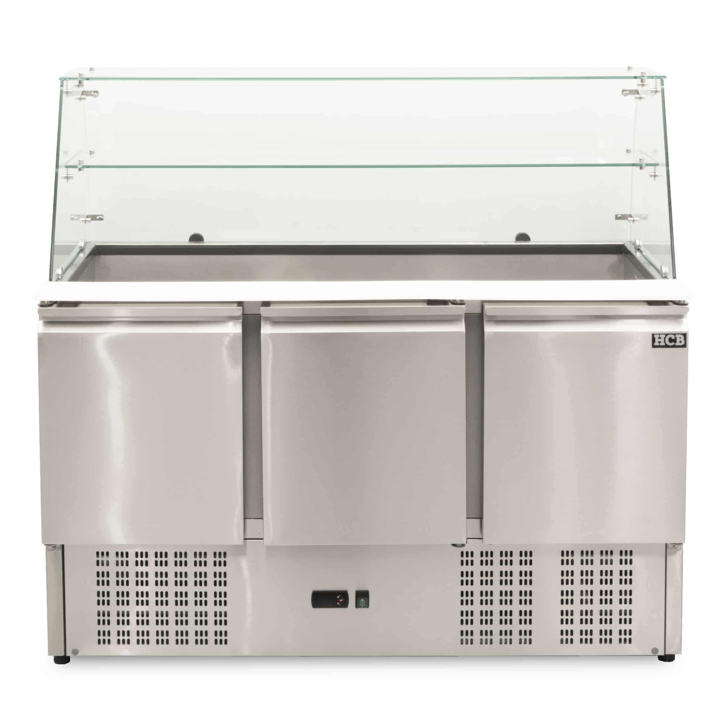 Die HCB Saladette gekühlte Werkbank ist von hoher Qualität und hat ein stilvolles Design, das perfekt in jede professionelle Küche passt. Entscheiden Sie sich für Zuverlässigkeit und Funktionalität mit der HCB Saladette gekühlten Werkbank mit aufklappbarem Deckel.