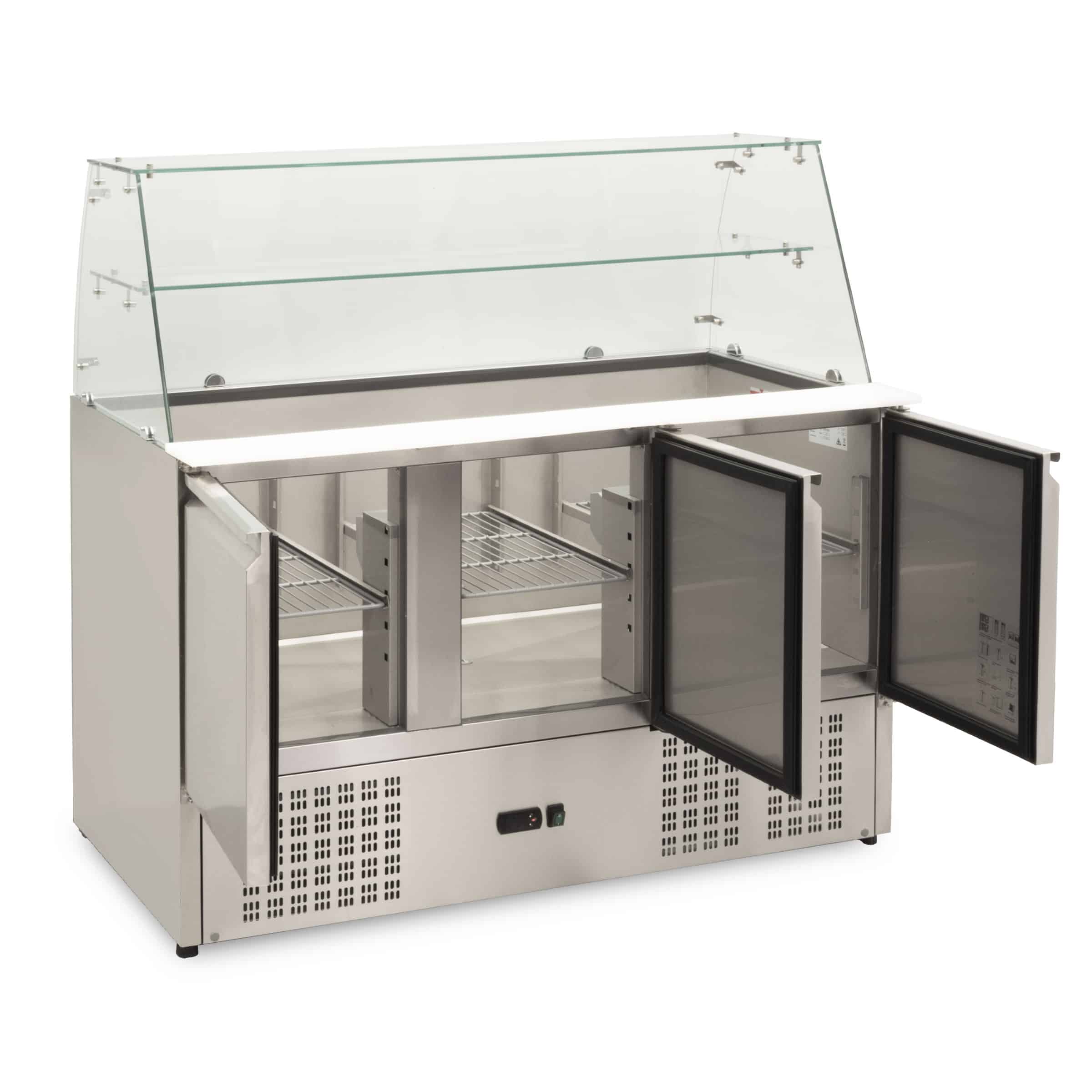 HCB Basic-line Saladette gekühlte Werkbank – 3 Türen – 137 cm – 230V – Edelstahl