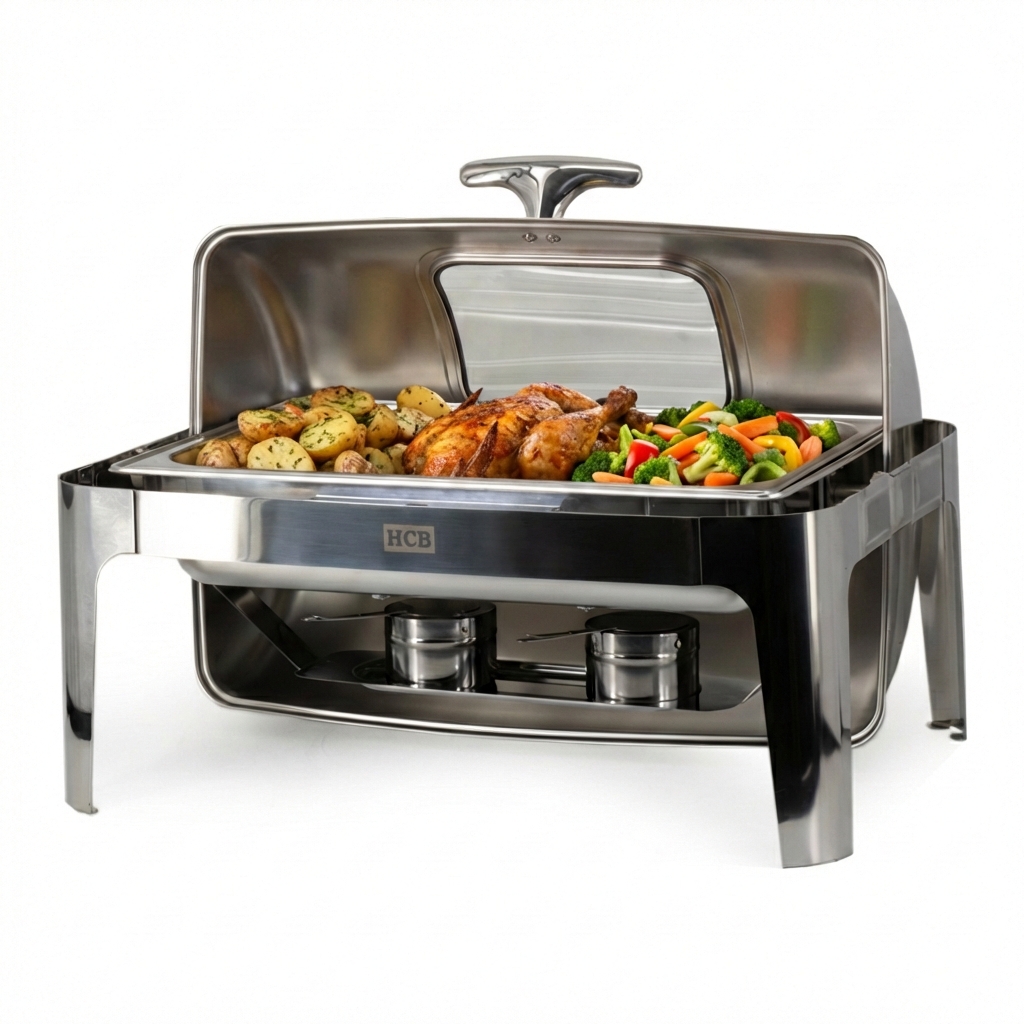 HCB Chafing Dish – Rolltop – 1/1 GN – Schauglas – 9 Liter – Edelstahl