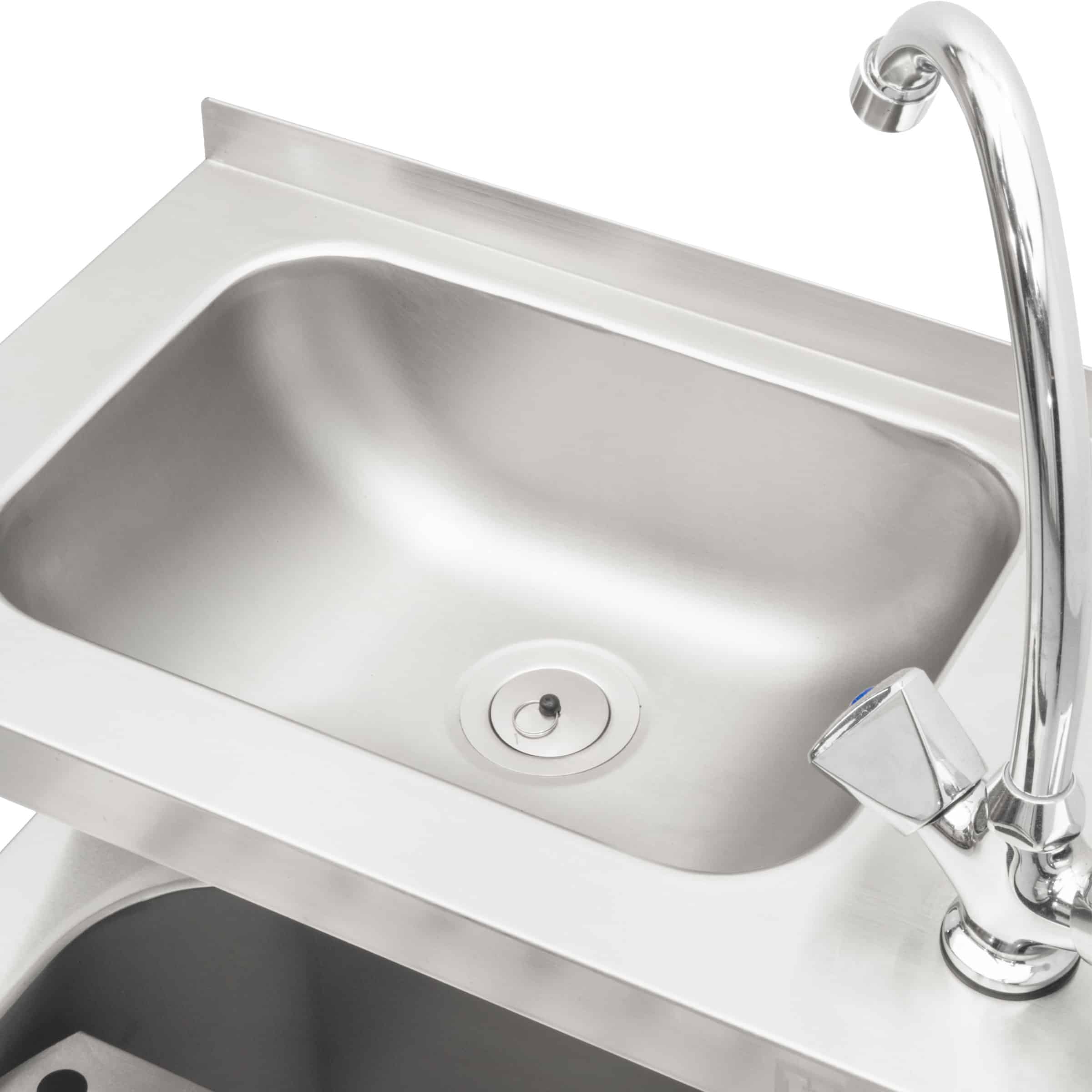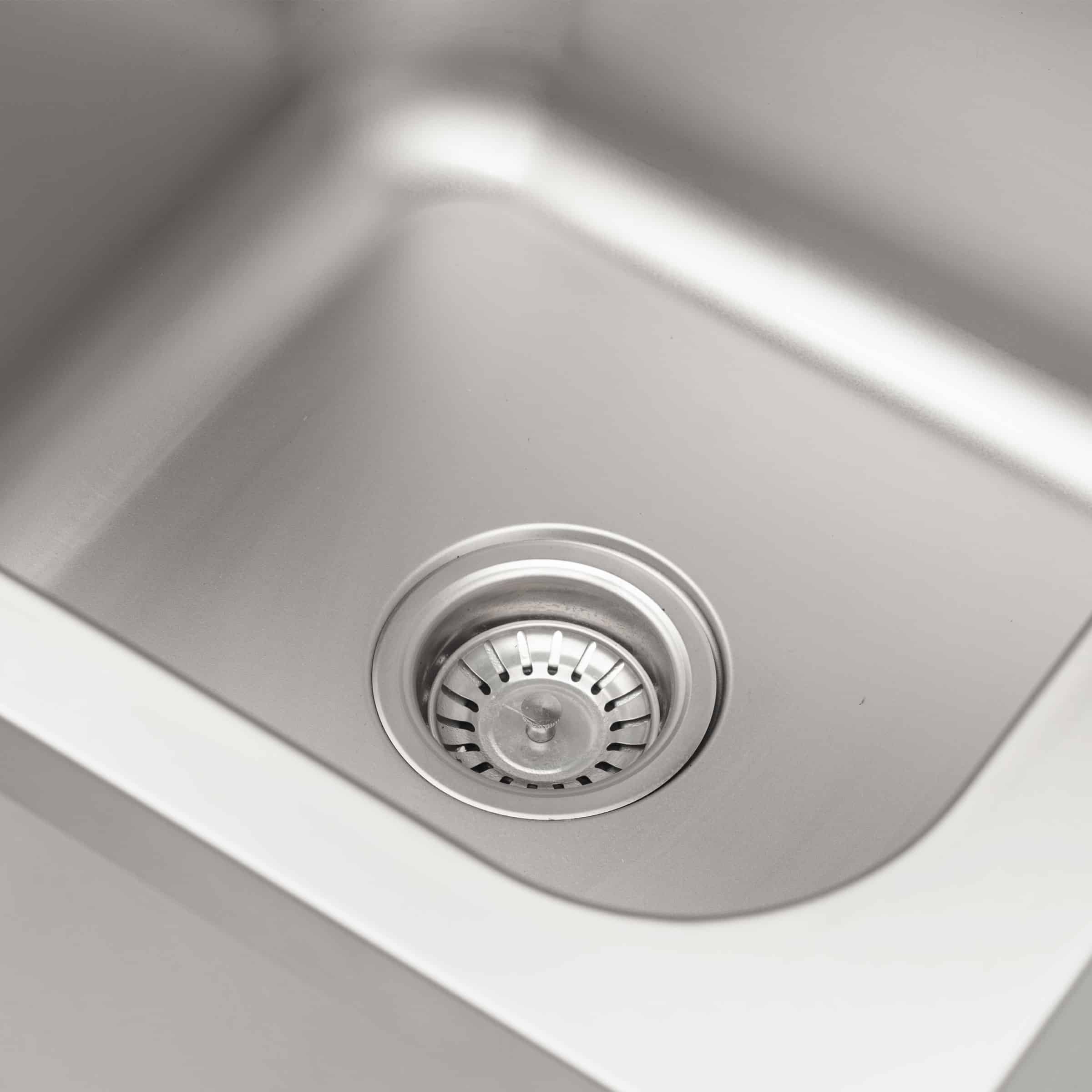 Die Spüle ist aus hochwertigem Edelstahl gefertigt und auf Langlebigkeit ausgelegt. Das Material ist äußerst hygienisch, leicht zu reinigen und resistent gegen Korrosion und Verschleiß. Die Ausgussschale erleichtert das Abgießen von Flüssigkeiten, während das Gitter Platz für Utensilien und andere Vorräte bietet.