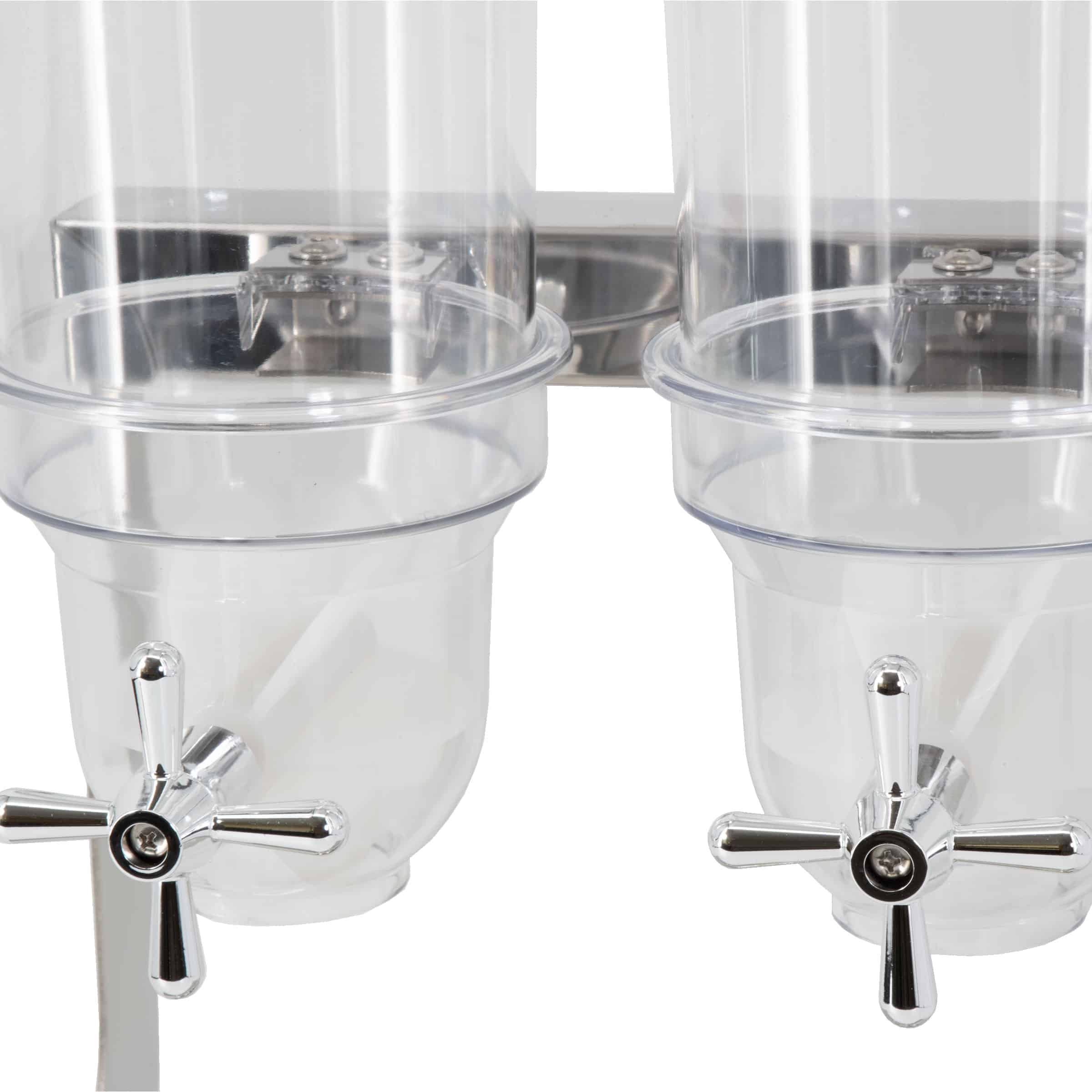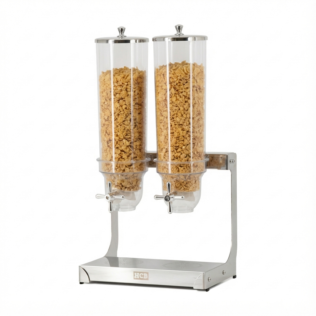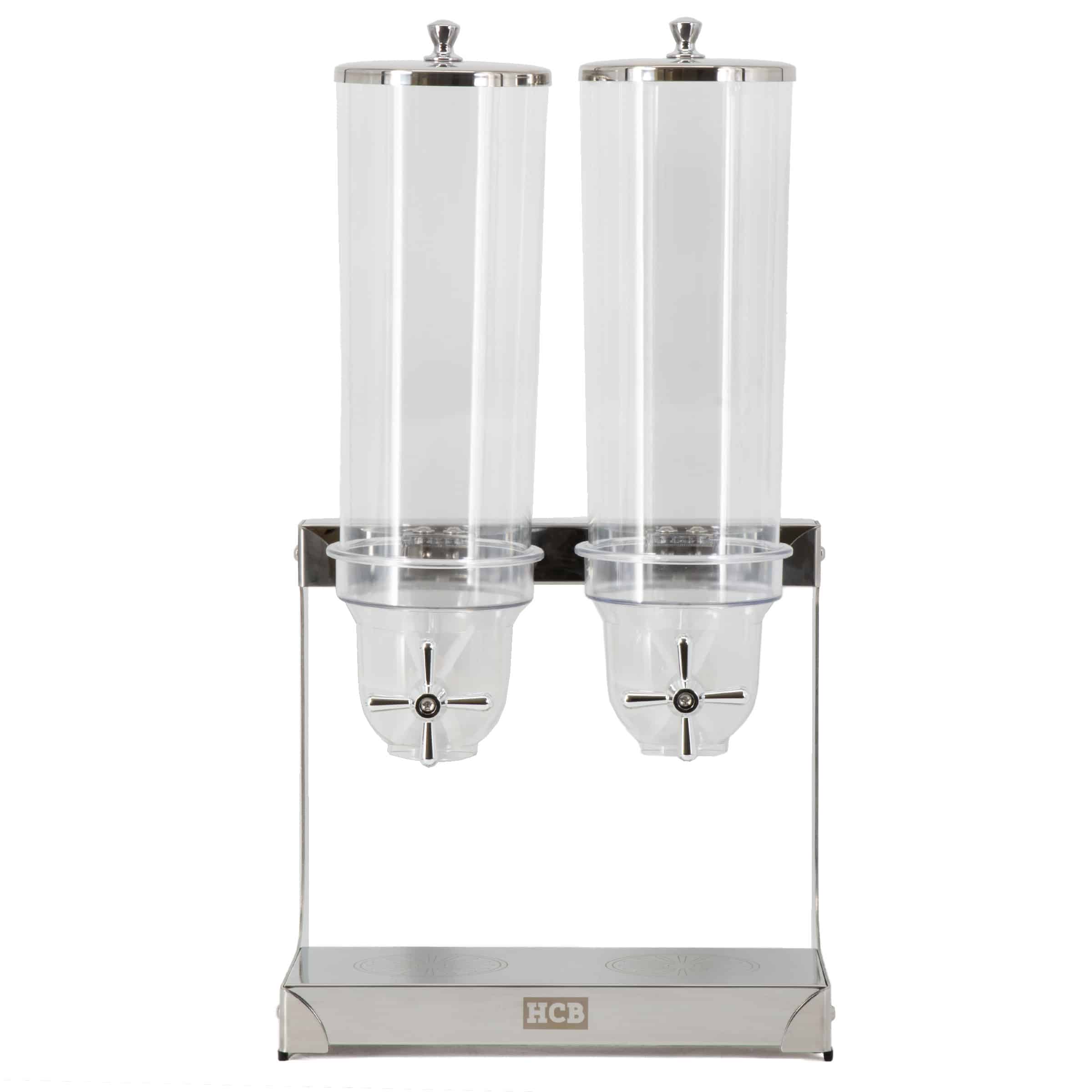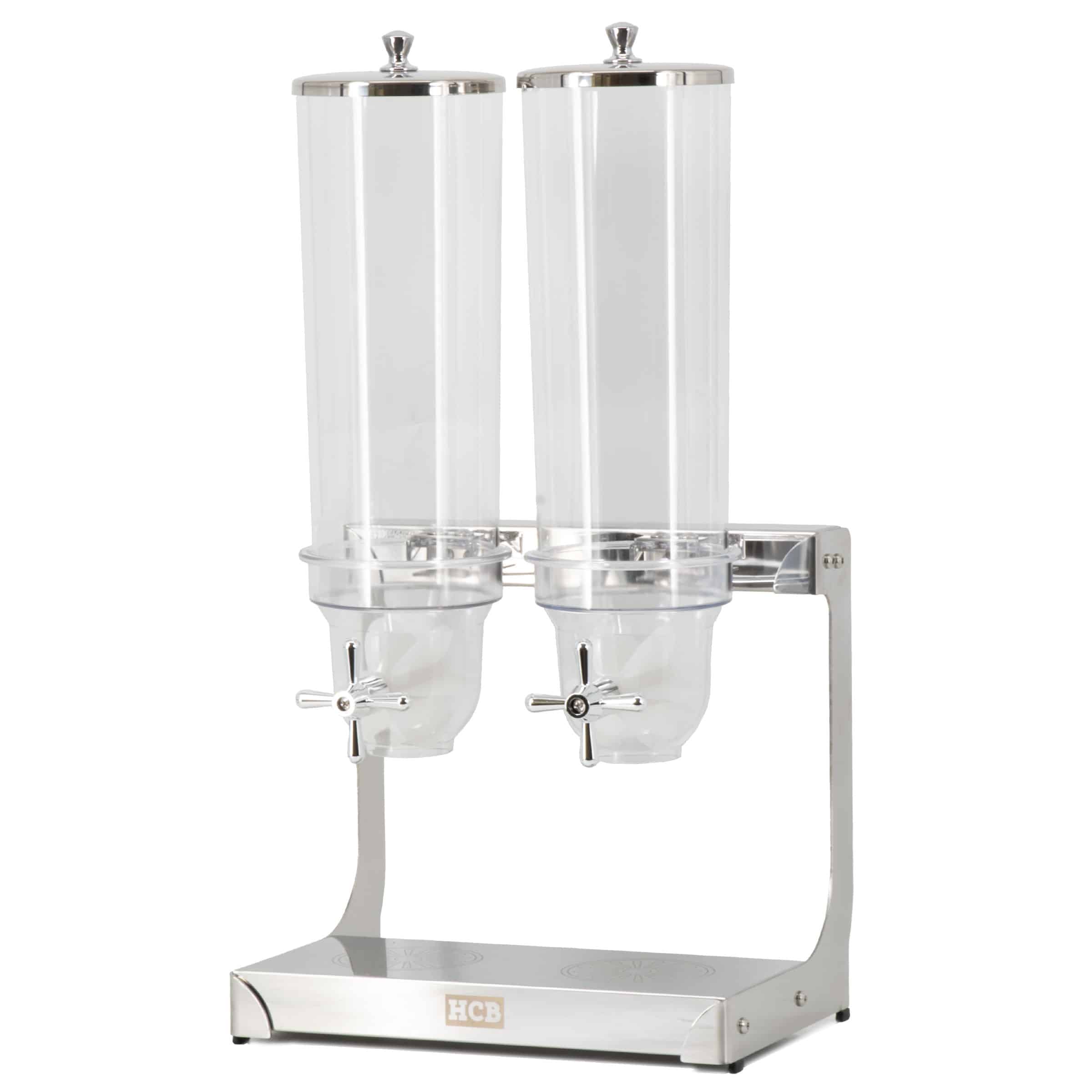Der HCB Edelstahl-Getreidespender 2 x 3,5 Liter ist die Lösung für eine stilvolle und hygienische Präsentation von Frühstücksflocken, Müsli oder Nüssen an jedem Frühstücksbuffet oder Selbstbedienungspunkt in der Gastronomie. Dank des kratzfesten Behälters und der robusten Konstruktion aus Edelstahl ist dieser Spender perfekt für den intensiven, täglichen Gebrauch geeignet. Er sorgt auch zu Hause beim Frühstück oder einem festlichen Brunchbuffet für einen luxuriösen Look.