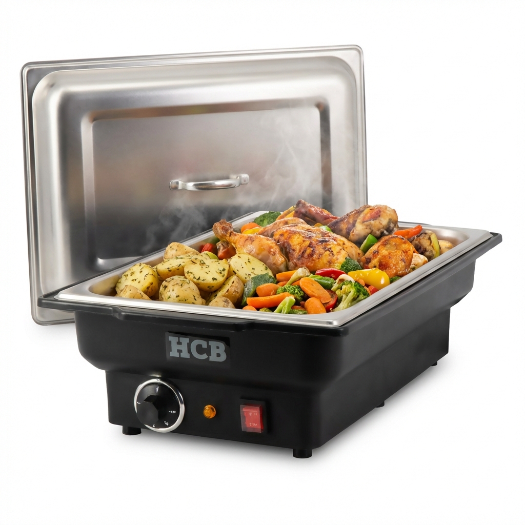 Im Gastgewerbe geht es vor allem um Präsentation und Qualität. Mit diesem elektrischen Chafing Dish können Sie Gerichte stundenlang auf der perfekten Temperatur halten, ohne sich ständig um sie kümmern zu müssen. Ob für aufwendige Buffets, Catering-Events oder à la carte – diese Warmhalteplatte sorgt dafür, dass jeder Bissen so köstlich ist, als käme er gerade aus der Küche. Mit der einstellbaren Temperaturregelung haben Sie die volle Kontrolle, so dass Ihre Gerichte nie zu heiß oder zu kalt serviert werden.