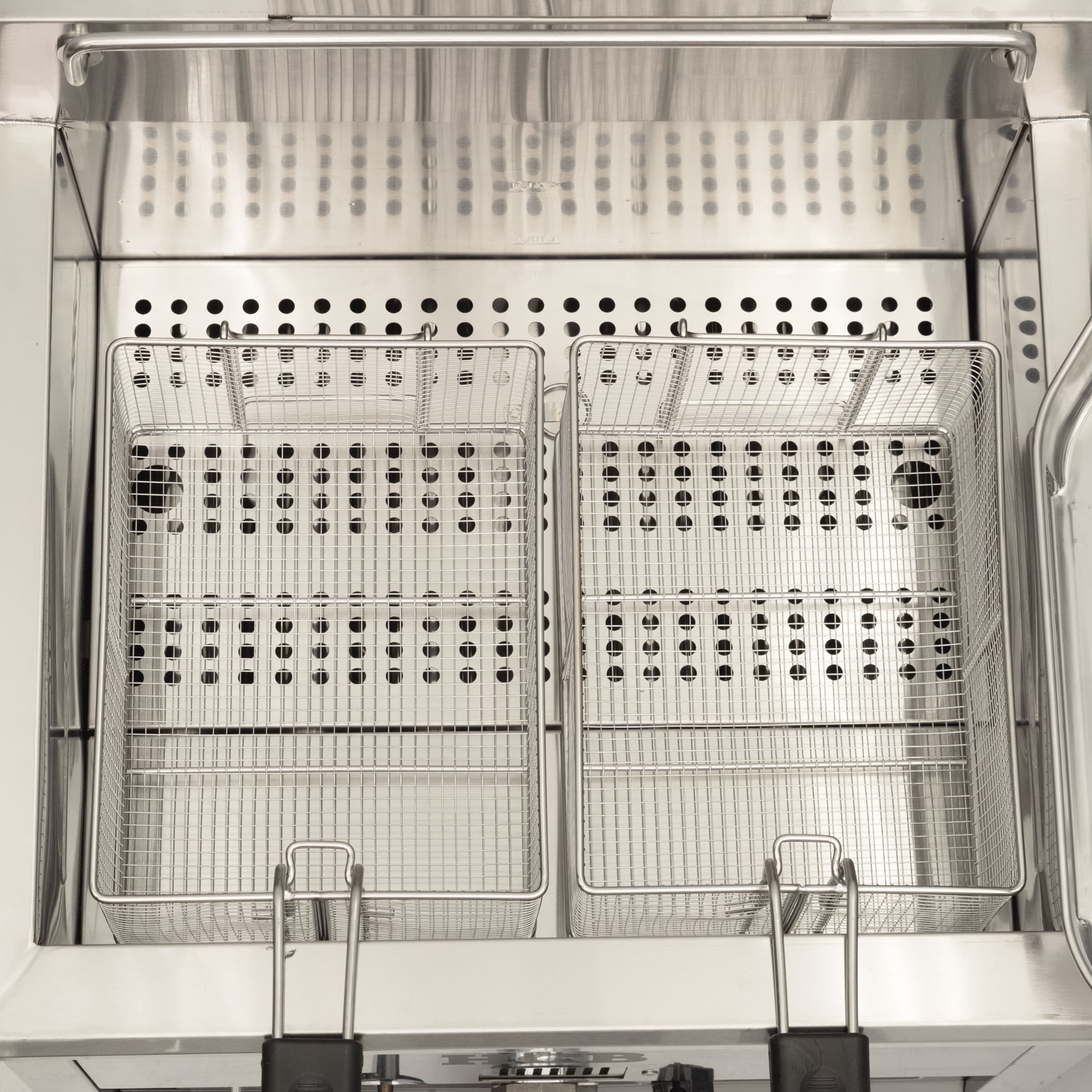 Die Fritteuse wird mit 2 Frittierkörben geliefert, so dass Sie problemlos mehrere Produkte gleichzeitig zubereiten können. Und dank der Verwendung von Erdgas ist die Fritteuse auch sehr energieeffizient.