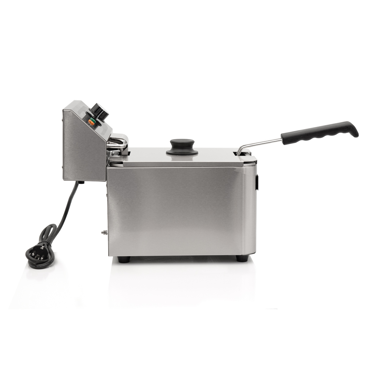 Diese Fritteuse mit einem Fassungsvermögen von 4,5 Litern ist perfekt für die professionelle Küche. Sie ist ideal zum Frittieren kleinerer Mengen auf einmal, aber die Qualität geht nicht auf Kosten der Größe. Die Fritteuse eignet sich perfekt zum Frittieren verschiedener Arten von Lebensmitteln wie frischen Pommes frites, Gemüse und Snacks. Die Reinigung ist ein Kinderspiel, denn alle Teile sind leicht abnehmbar und da alles aus Edelstahl besteht, ist sie leicht zu reinigen.
