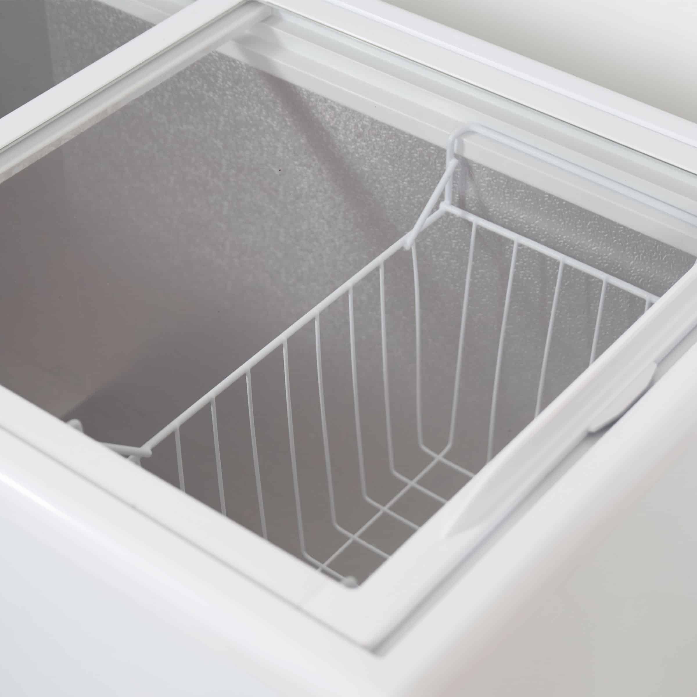 Die Glasschiebedeckel des HCB Gefrierschranks sorgen dafür, dass Sie immer einen guten Überblick über Ihren Gefrierschrankbestand haben. Außerdem lassen sich die Schiebedeckel leicht öffnen und schließen, so dass Sie schnellen Zugriff auf Ihre Produkte haben.