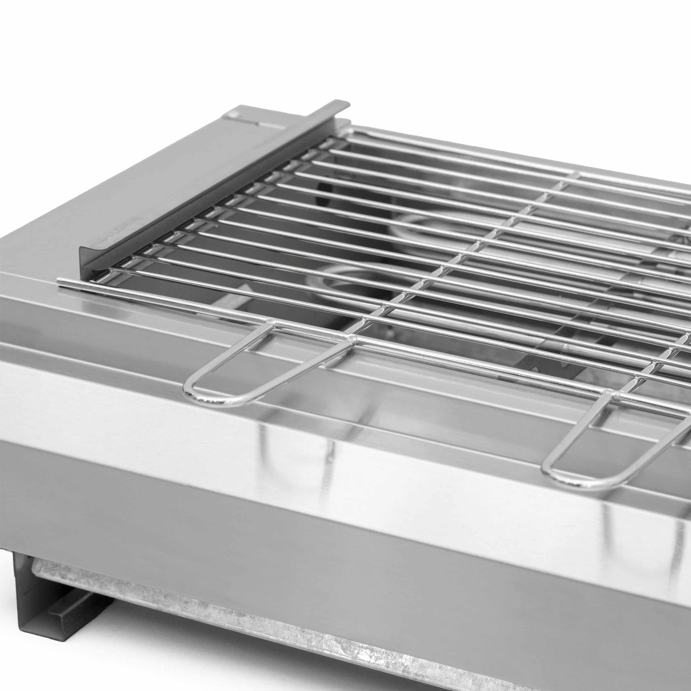 Met deze grill tover je in een handomdraai heerlijke saté, vlees of groenten op tafel. Dankzij het slimme waterreservoir heb je minder last van rook, wat het grillen extra prettig maakt – ook binnen. Het rooster is zo schoon, zodat je snel weer door kunt met de volgende ronde. Ideaal voor drukke horecakeukens of foodtrucks waar snelheid en gemak belangrijk zijn. Je zet de grill makkelijk neer waar je wilt en begint direct met grillen.