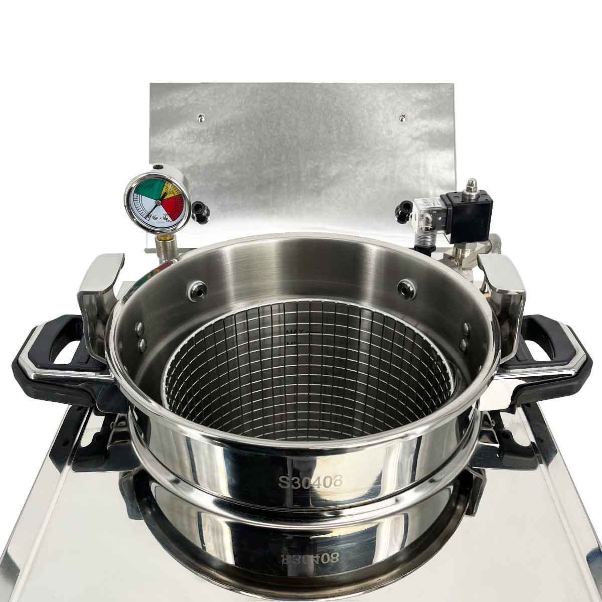 Das Besondere an dieser Fritteuse ist der Einsatz der Hochdrucktechnologie. Durch das Frittieren unter hohem Druck bietet diese Fritteuse nicht nur ein knuspriges Endergebnis, sondern spart auch erheblich an Öl und Energie, was sich positiv auf die Umwelt auswirkt. Mit einer Höchsttemperatur von 180 °C erzielen Sie durchgehend hervorragende Garergebnisse.