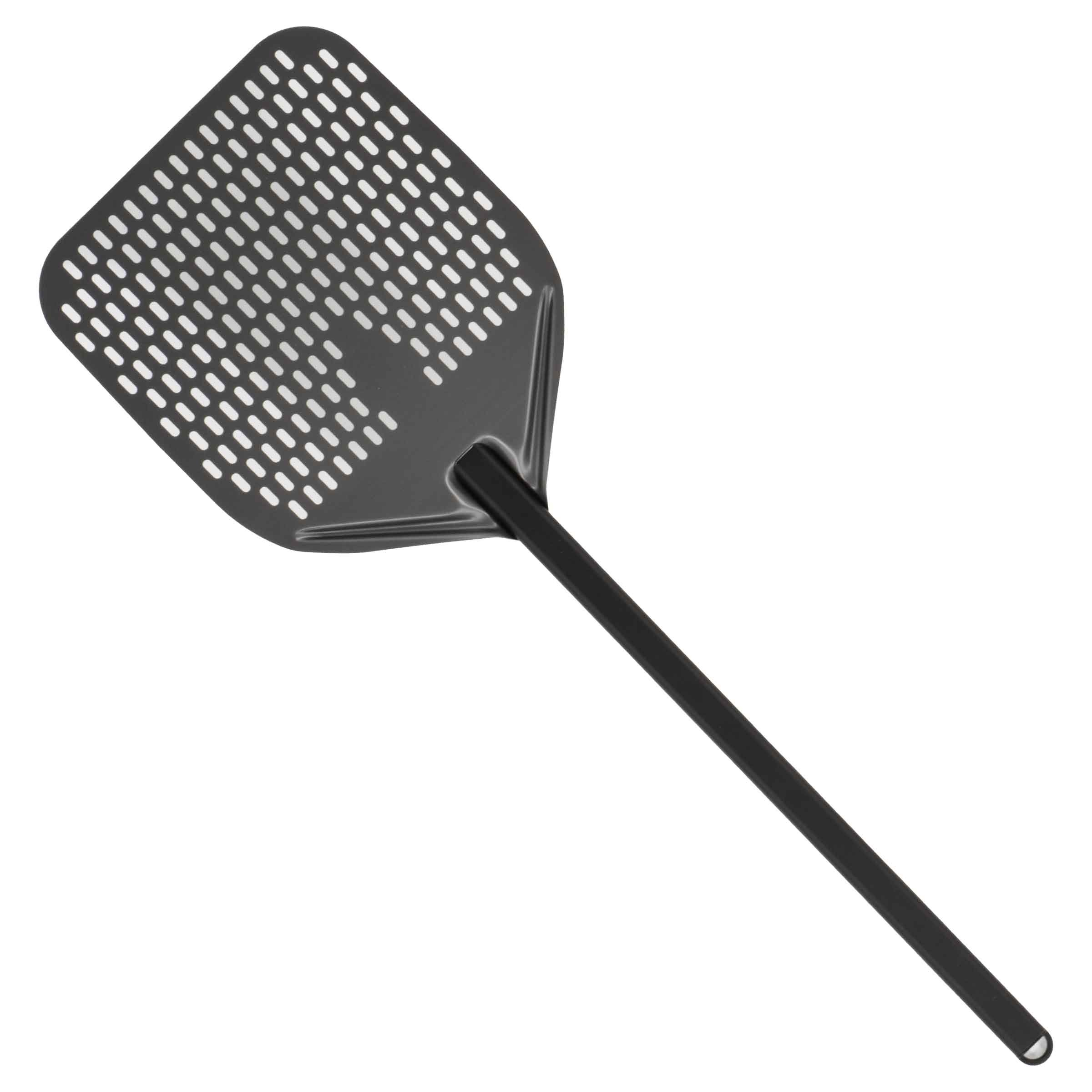 Machen Sie das Servieren von Pizza mühelos und effizient mit unserer hochwertigen Pizzaschaufel aus langlebigem, eloxiertem Aluminium. Mit ihrer perforierten Klinge bietet diese Schaufel die perfekte Kombination aus Robustheit, Leichtigkeit und Funktionalität für jede Pizzabäckerei oder Küche.