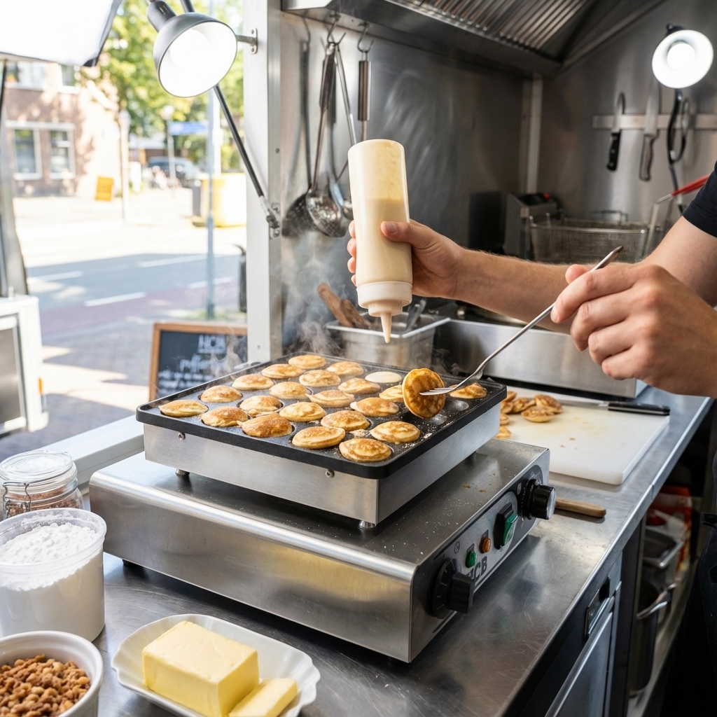 Dank der geräumigen Backfläche können Sie mehrere Poffertjes gleichzeitig zubereiten und so schnell große Mengen servieren. Ob auf einer Party, einem Foodtruck-Event oder in einem geschäftigen Gastronomiebetrieb, unsere Poffertjes-Bratplatte ist immer einsatzbereit.