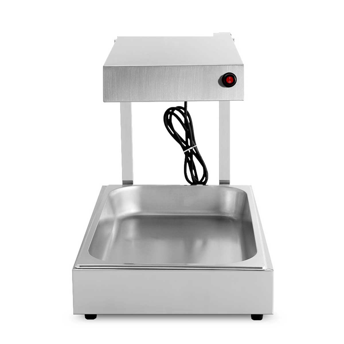 Dieser Pommes Frites-Wärmer funktioniert über ein Heizelement, das im oberen Teil des Geräts angebracht ist. Das Heizelement sorgt dafür, dass die Pommes frites auf der richtigen Temperatur bleiben und gleichzeitig sorgt die Lampe dafür, dass Sie immer schnell und deutlich sehen können, wie viel noch im Behälter ist.