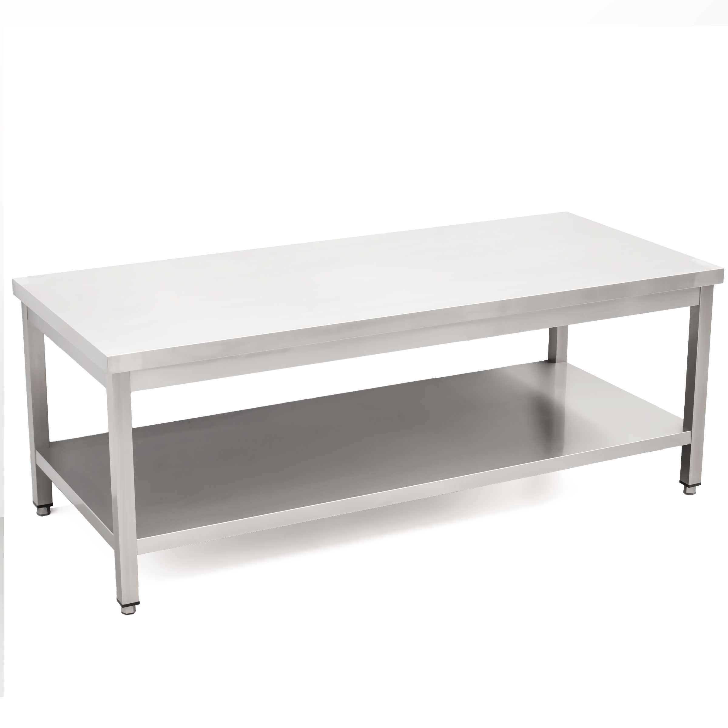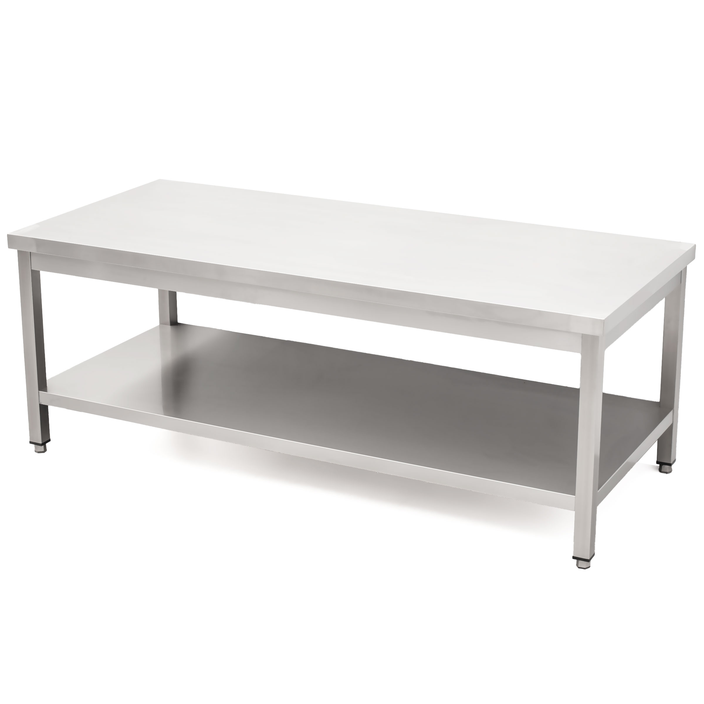 Um in Ihrer professionellen Küche sicher, optimal und effizient arbeiten zu können, sind Arbeitstische aus Edelstahl von großer Bedeutung. Ausgestattet mit einer extrastarken Edelstahlplatte, stabilen Vierkantbeinen und sauber verarbeiteten Ecken ist dieser Arbeitstisch der Marke HCB daher die perfekte Wahl! Der Arbeitstisch eignet sich hervorragend für die Zubereitung von Speisen und verfügt über eine zusätzliche Ablagefläche. Außerdem ist der Tisch aufgrund seiner Robustheit und Tragfähigkeit auch dafür geeignet, Küchengeräte darauf abzustellen.