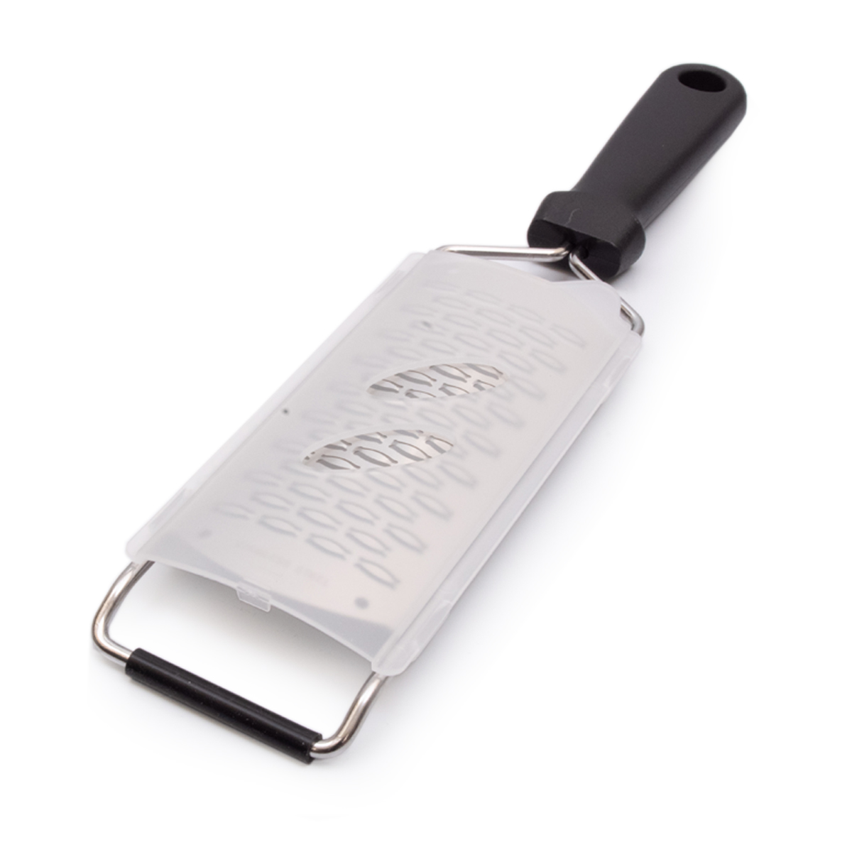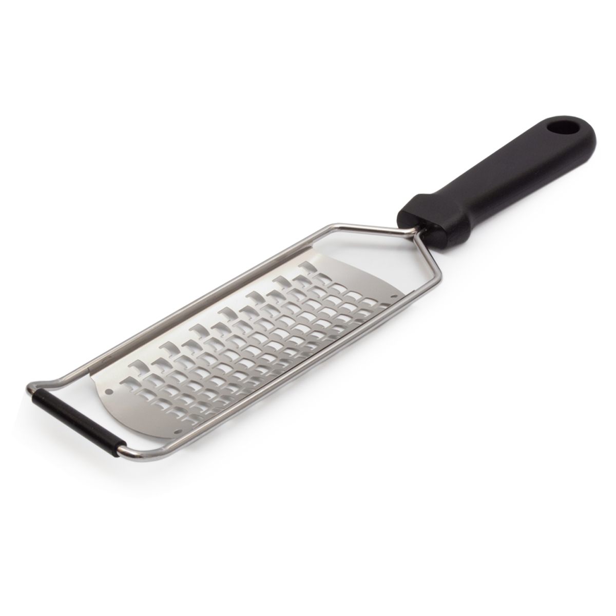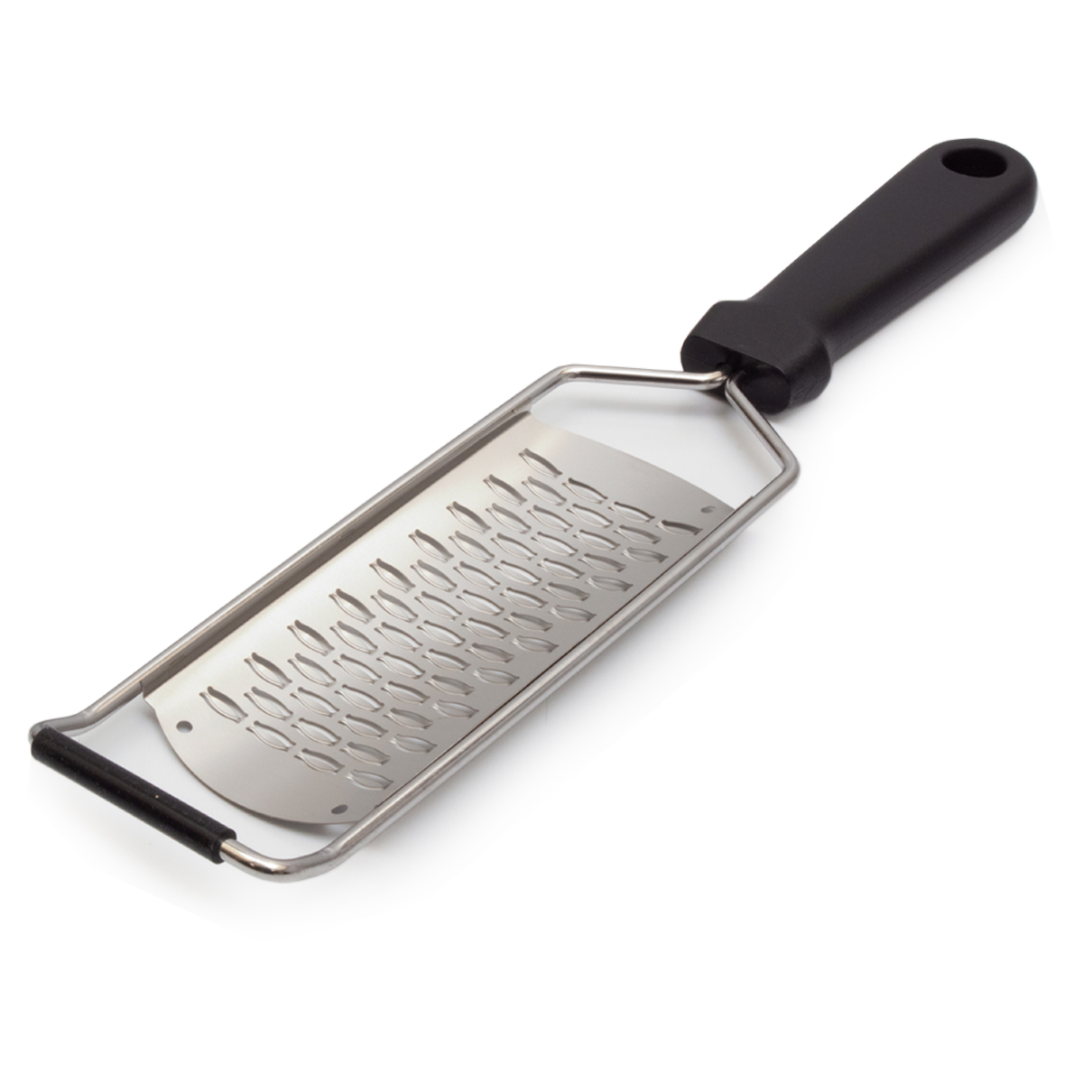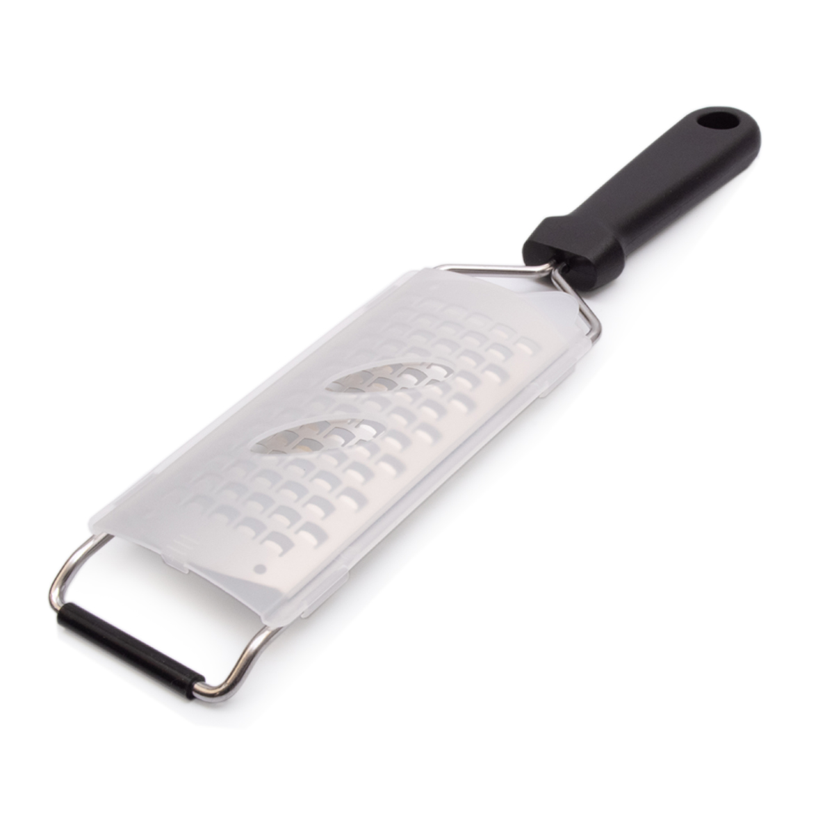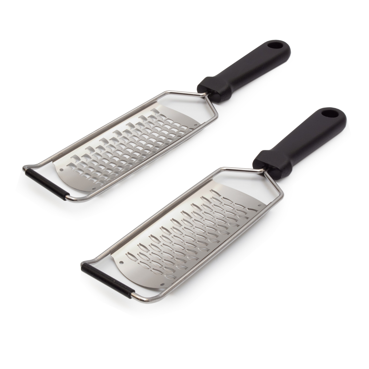 Beide Reiben haben einen silbernen Edelstahlrahmen und einen stabilen schwarzen Kunststoffgriff. Das sorgt für Langlebigkeit, Stabilität und einen bequemen, ergonomischen Griff, auch bei intensivem Gebrauch in der Küche. Nach dem Gebrauch können die Reiben einfach in der Spülmaschine gereinigt werden, was Zeit spart.