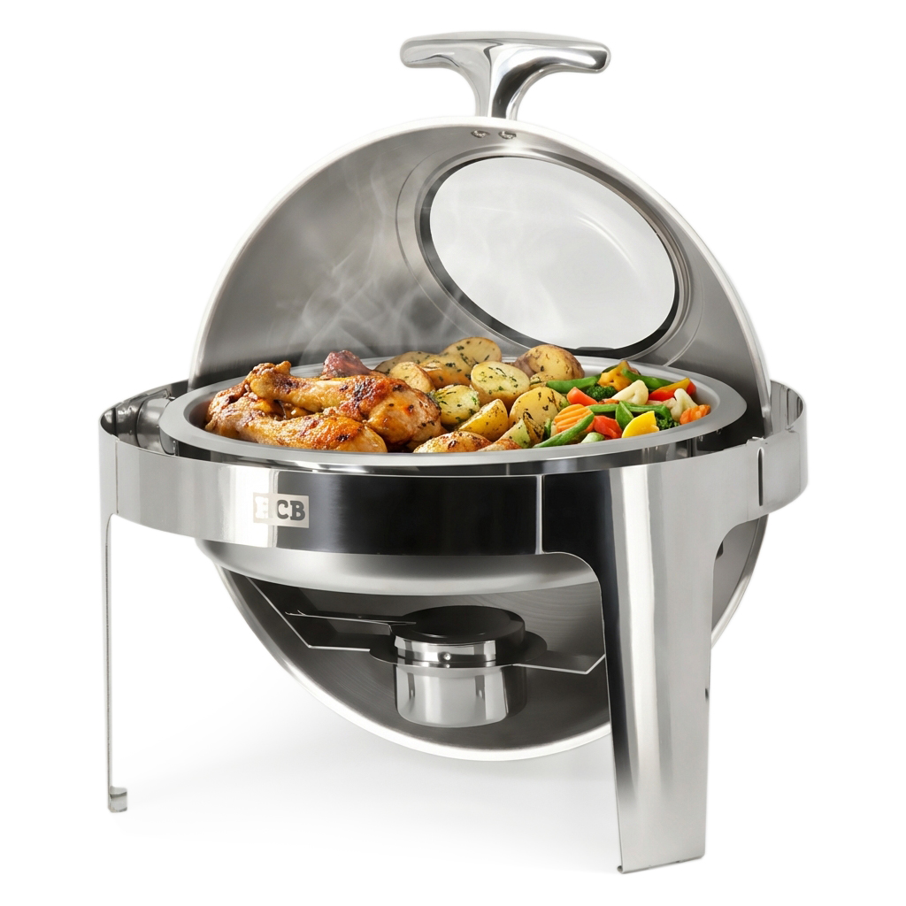 HCB Runder Chafing Dish – Rolltop – 6 Liter – Schauglas – Edelstahl