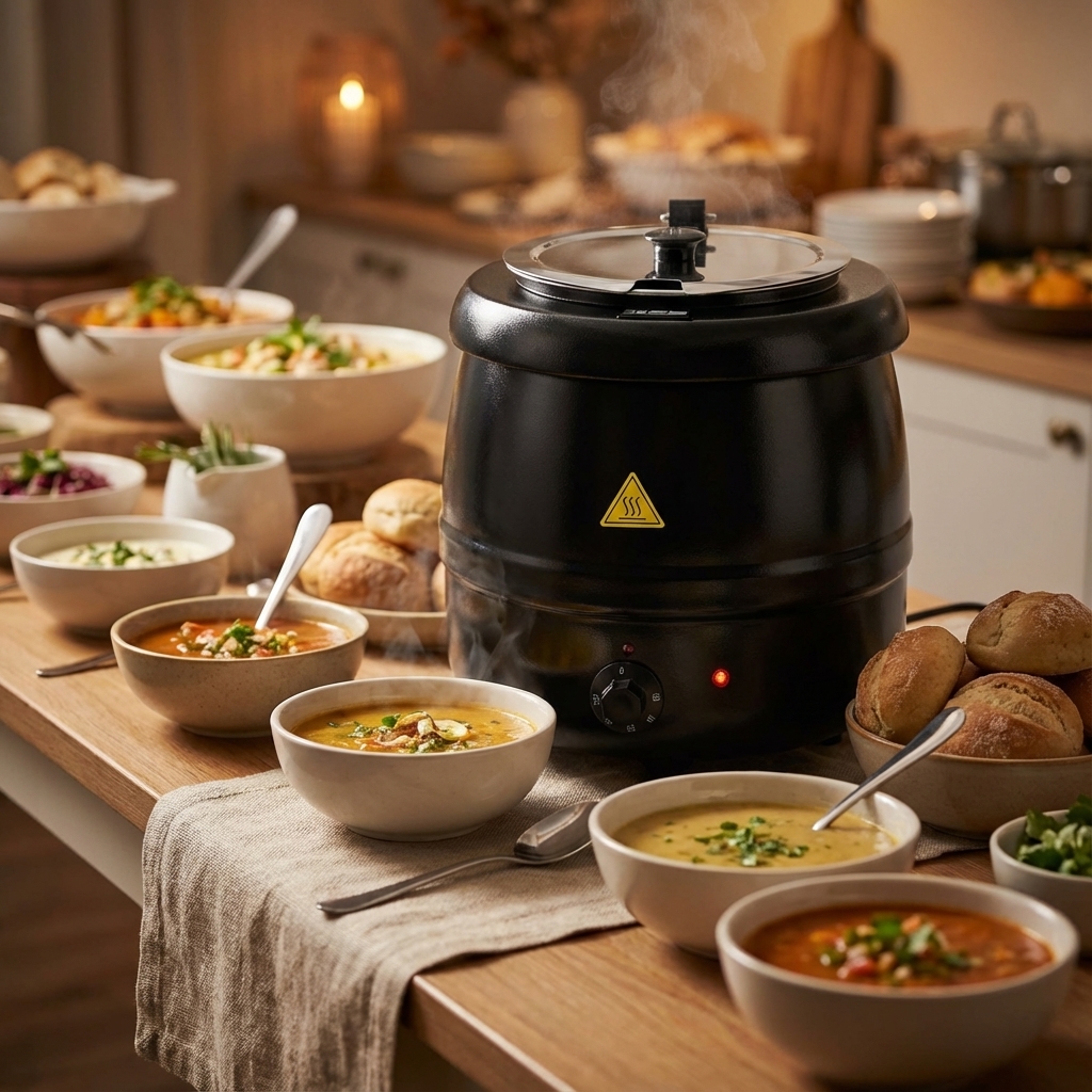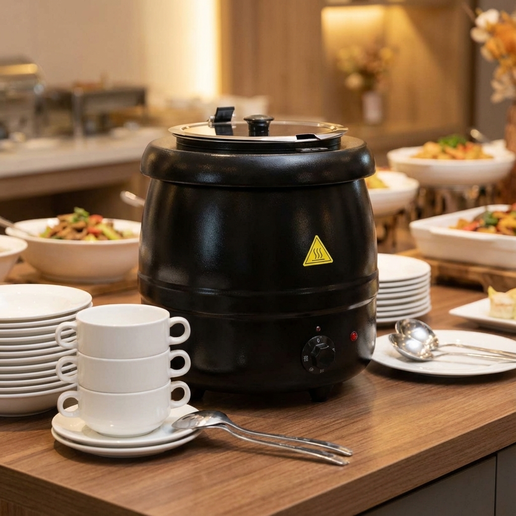 Der Suppenkessel ist die ideale Lösung für das Servieren köstlicher, heißer Suppen, Eintöpfe und anderer Gerichte in Ihrem Restaurant, Café oder Buffet. Mit seinem stilvollen und funktionellen Design ist der Suppenkessel ein unverzichtbares Gerät auf jedem Buffet.