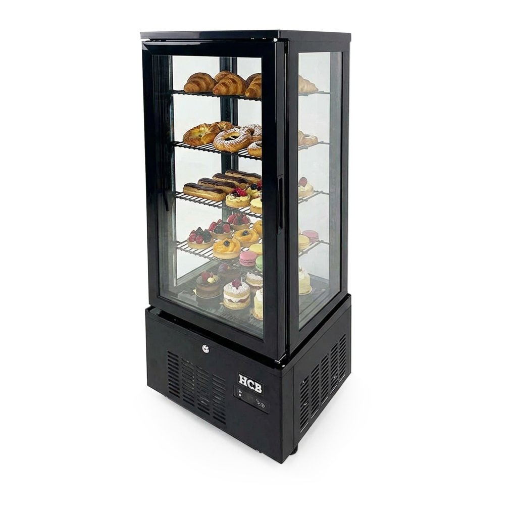 Die Vitrine ist vielseitig und eignet sich für verschiedene Arten von Produkten, von Desserts bis zu Getränken. Die verstellbaren Einlegeböden machen es einfach, die Vitrine an Ihre Bedürfnisse anzupassen, während das digitale Temperaturkontrollsystem eine präzise Konservierung ermöglicht.