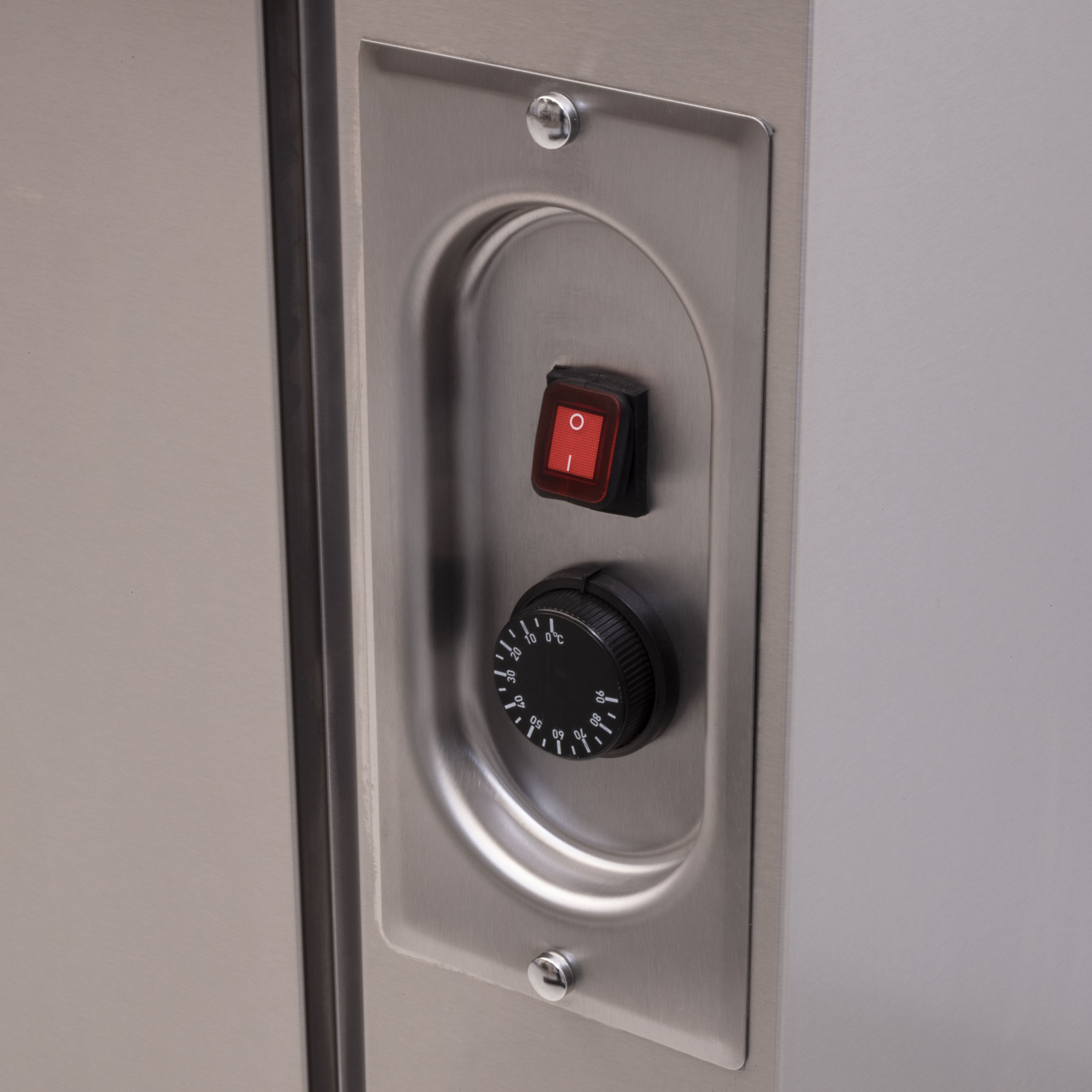 Um in Ihrer professionellen Küche sicher, optimal und effizient arbeiten zu können, ist ein Wärmeschrank aus Edelstahl von großer Bedeutung. Ausgestattet mit einer extra starken Edelstahlplatte, stabilen Beinen und fest verarbeiteten Ecken ist dieser Tellerwärmer der Marke HCB daher die perfekte Wahl! Der Wärmeschrank eignet sich hervorragend zum Aufwärmen und Warmhalten Ihrer Teller. Darüber hinaus ist der Schrank aufgrund seiner Robustheit und Tragfähigkeit auch dafür geeignet, Küchengeräte darauf abzustellen.